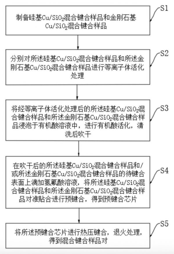 专利文献显示,通过Cu/SiO2混合键合技术将硅基与金刚石基衬底材料进行三维集成能够融合硅基半导体器件成熟的工艺及产线、生产效率高、成本较低的优势及金刚石极高的发展潜力,为三维集成的硅基器件提供散热通道以提高器件的可靠性。然而,现有的Cu/SiO2混合键合技术多以硅为衬底进行集成,其集成工艺不完全适用于金刚石,存在以下问题: