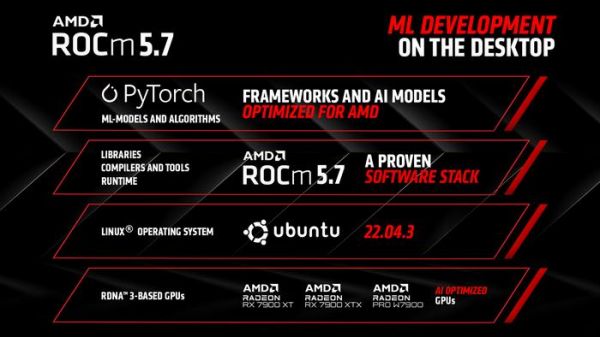 这一举措使开发人员能够使用配备 AMD 消费级旗舰 GPU 利用 PyTorch 库进行人工智能应用的开发,从而避免对于英伟达的过度依赖。