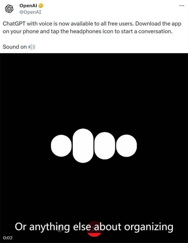 此外,在沉寂数天后,OpenAI 终于在社交平台 X 上发声了。这次是语音版 ChatGPT 向所有免费用户开放,并可以在手机上下载 App。使用时点击耳机图标即可开始对话。这似乎是一个稳住用户的举动,向外界表明 OpenAI 仍在正常运转。