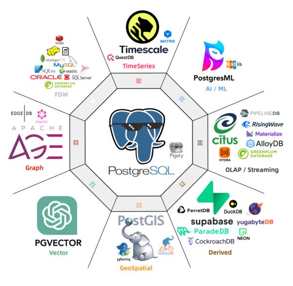 像 Llama 这样的开源大模型与私有化部署为向量数据库扳回一局 —— 然而,这一部分需求却被加装了向量功能的经典数据库占领了 —— 以 PostgreSQL 上的 PGVector 扩展为先锋代表,其他数据库如 Redis,ElasticSearch, ClickHouse, Cassandra 也紧随其后,不甘示弱。