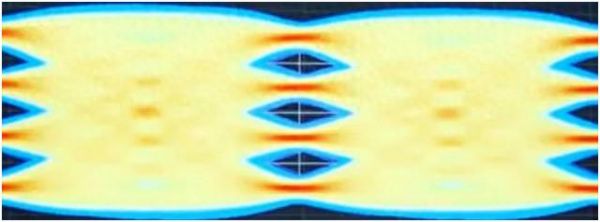 在该活动上,新思科技进行了一次所谓的“窥探式”演示,展示了PCIe 7.0即将达到的128 GT/s的数据传输速率。在演示中,新思科技评估板将 PRBS 模式发送到泰克 DPO70000SX 示波器上。所有三个 128 GT/s PAM4 眼图均打开,三者之间具有良好的线性度、低抖动和良好的比率电平失配 (RLM)。