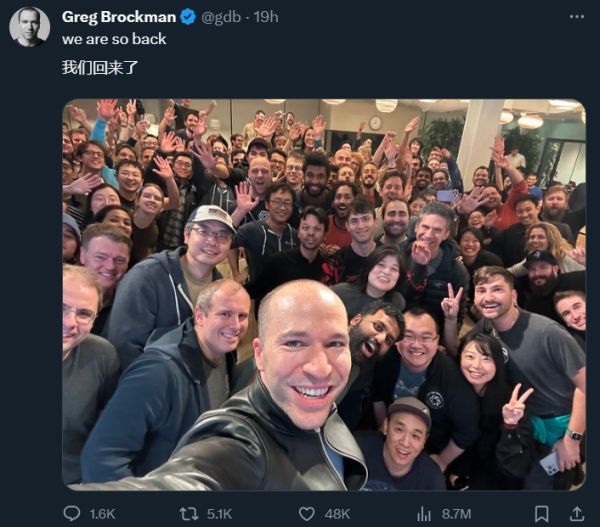 除了 Pachocki 和 Sidor,OpenAI 前董事长兼联合创始人 Greg Brockman 也一直致力于将该技术集成到新产品中。上周,他和 Altman 一起离开,如今又一起回归。