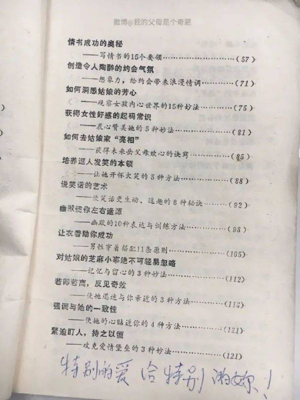 (网友晒出爸爸的《男子恋爱秘诀》)