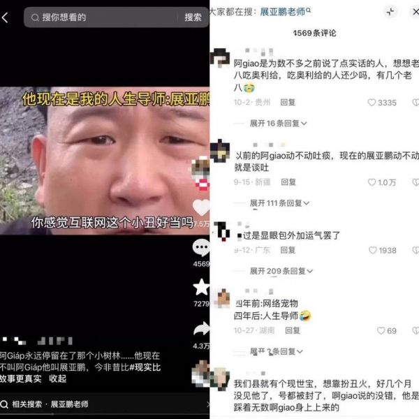 而阿giao哥、药水哥这些土味网红,则是通过全新的形象、谈吐来打造一个完全区别于过去的互联网形象。观察阿giao哥最新发布的内容,早已不是当年那个哗众取宠的“电子宠物”,取而代之的是大力批判“互联网小丑”、积极做公益的人生导师展亚鹏。不过,虽然嘴上说着“曾经的阿giao已经死了”,但几乎每个视频的开头都要提到自己是阿giao。