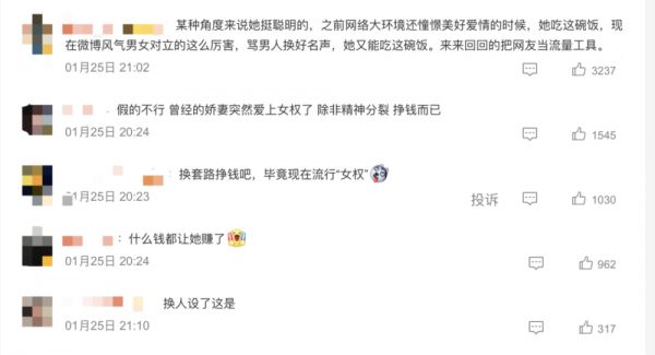 虽然前后人设反差够大,但毕竟玩娇妻文学本身和女性主义就不沾边,而且之前蒙淇淇发布的内容也一直被网友质疑“杜撰居多”,因此新的人设和故事很难被大家信服。尤其是网友们逐字解读了蒙淇淇的控诉内容之后,发现了时间线混乱、混淆HPV和HIV等多个BUG,不少人直言“编的吧,就是为了立人设涨粉。”