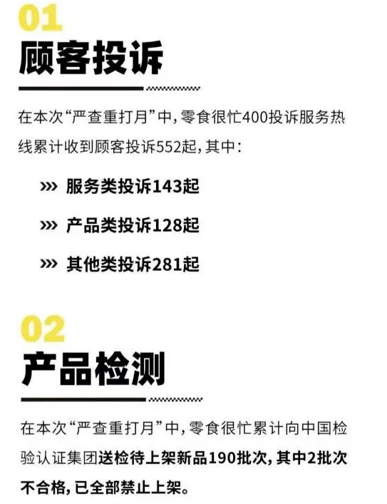 零食很忙官方发布的顾客投诉统计。(图/零食很忙官方公众号截图)