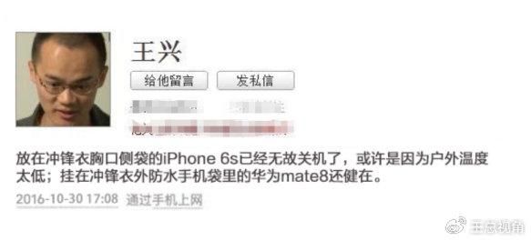 2018年,他参观华为高端手机生产线后,说“对华为的手机更有信心了”。作为一个没干本行的清华电子工程系学生,他向华为海思半导体人表示深深的敬意。哪怕是作为一个普通消费者,他都要说——天气太冷,冲锋衣胸口内测的iPhone已经关机,而冲锋衣外侧的华为手机还健在。