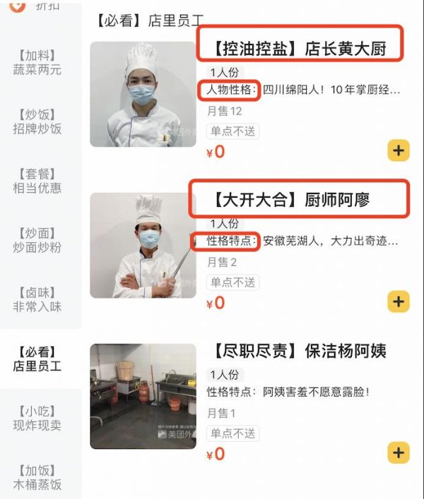 店铺的创意不仅体现在店名上,有炒饭商家主张服务精细化,推出了可以选择具体厨师的选人炒饭服务。