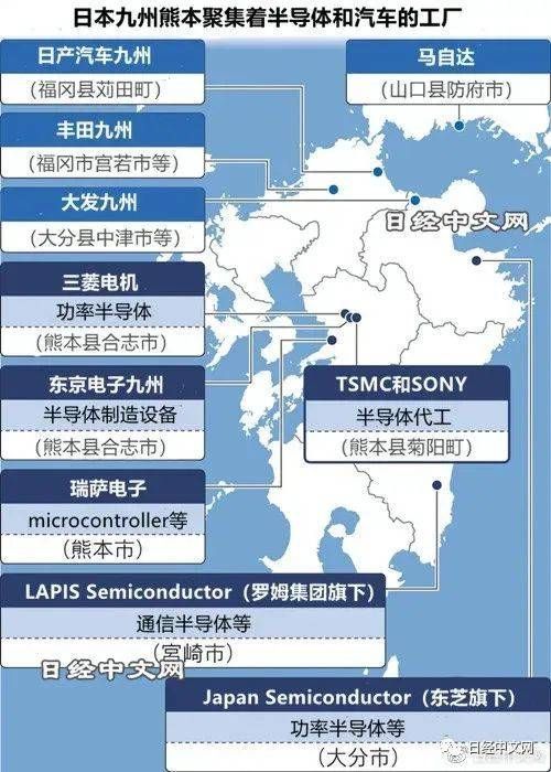 2021年,台积电决定在熊本建设新厂,日本政府提供了35亿美元补贴。台积电携手日本索尼半导体解决方案(Sony Semiconductor Solutions Corporation, SSS)合资建设JASM(Japan Advanced Semiconductor Manufacturing)晶圆厂,生产22/28纳米制程的芯片。尽管与台积电在台湾量产5纳米制程芯片相比,熊本工厂出产的不是高端产品,但合资仍能带来协同效应。
