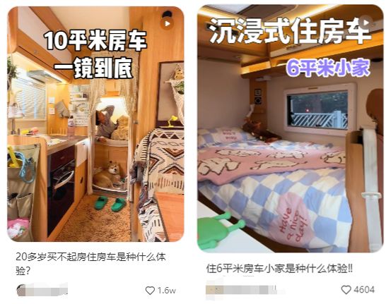 从社交平台上看,“裸辞后在房车上安家”“90后不买房住房车”“70万买了一个移动的家”“10㎡房车小窝,沉浸式回家”,房车勾勒出的美好生活途径,越来越多地出现在社交平台上。