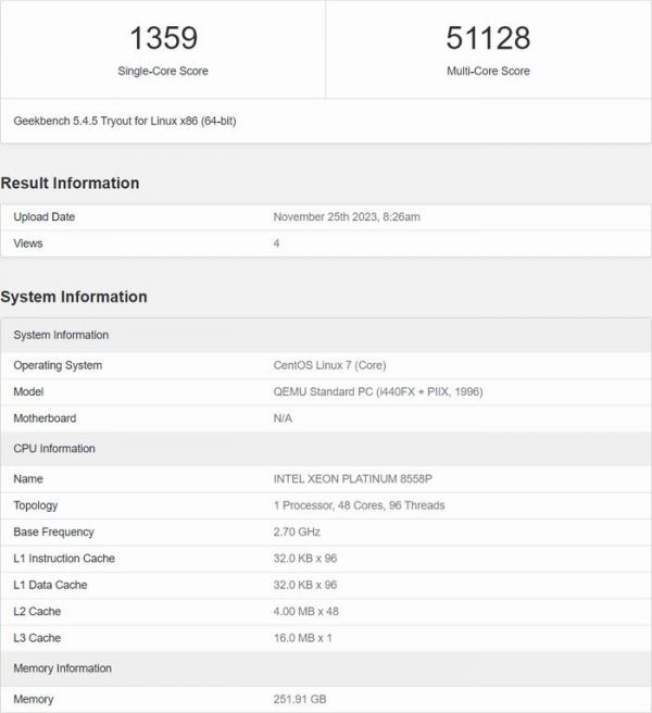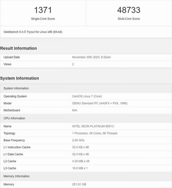 IT之家 11 月 25 日消息,在 8592+、8580 和 8558U 三款第五代至强“Emerald Rapids”CPU 跑分曝光之后,现在又有 Platinum 8558P 和 8551C 两款 CPU 现身 GeekBench 跑分库。