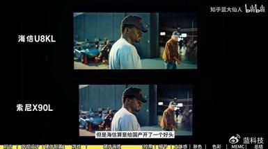 在屏摄对比图中可以明显看到,海信电视U8KL暗夜篝火不模糊、字幕无光晕、小窗口“亮得起来”,整个画面效果更有层次感和立体感。用蓝大仙人的话说即“能够表现出暗场景中应有的细节,高亮画面细节表现也都很好”,并直言:“在立体感和爆发力方面,必须好好夸一夸海信。”