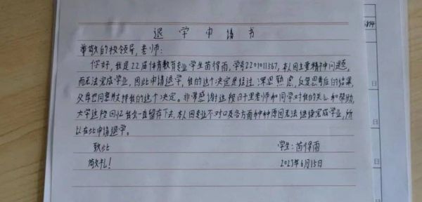 苗得雨的手写退学申请书