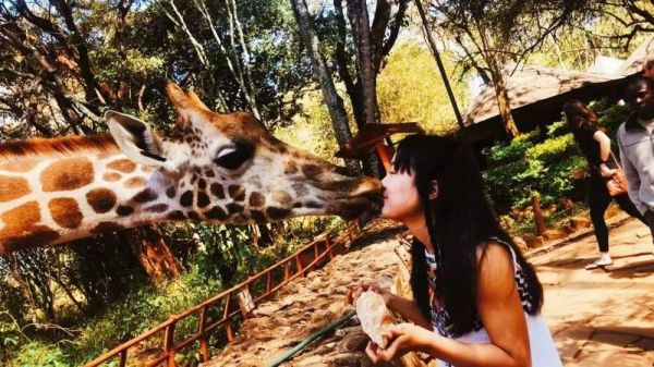 2019年3月王余方在肯尼亚与长颈鹿合影