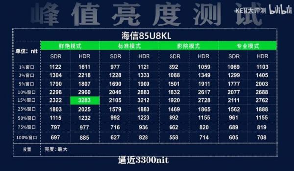 海信U8KL的屏幕稳定峰值亮度达到了3300nits,注意这里说的是稳定峰值亮度,而平常我们所指的峰值亮度指的是某一秒的极限值,根本无法全程保持高亮度。相比普通Mini LED电视的1000nits亮度,3300nits的亮度具备了XDR极致动态范围的能力。