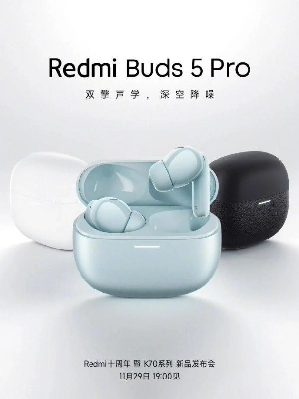 据IT之家此前报道,Redmi Buds 5 Pro 耳机已在前段时间官宣将于 11 月 29 日发布,配备“双擎声学,深空降噪”,采用“全新的声学结构和强悍的算法”,号称让音质体验和降噪能力全面进化。