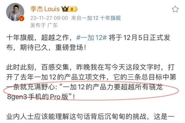 一加12定档12月5日发布:核心配置曝光,号称要超越所有旗舰