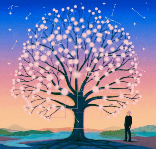 他把蜻蜓放好,然后走到一张站立式小书桌前,那里放着一台笔记本电脑,旁边是一堆数独谜题和一本记有电脑密码的笔记本(他很少做笔记,因为他设计了一套记忆系统,能在脑子里生成并回忆起很长的密码)。他问道:“我们来制作族谱如何?”他用两根手指(他没有固定的打字指法)输入了 “杰弗里·辛顿族谱”,然后按了回车键。2013年,谷歌收购了辛顿的初创公司,部分原因是该团队发现了如何利用神经网络大幅提高图像识别能力。现在,屏幕上布满了无穷无尽的族谱。