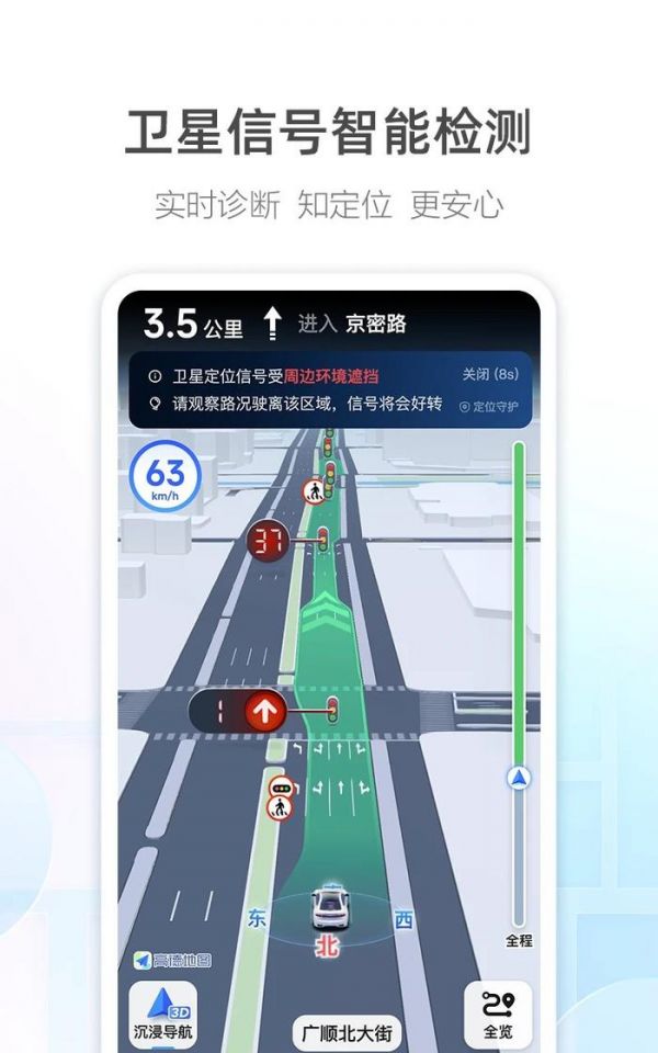 “自动帮找停车场”则可以在终点附近自动罗列出可用的停车场以及车位状态。“卫星信号智能检测”功能将提供当前卫星信号的实时检测及诊断,并在界面上显示使信号好转的具体措施。