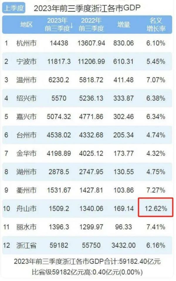 2023年前三季度经济表现最好的浙江城市,居然不是“亚运之城”杭州市,也不是“中国单项冠军之城”宁波市,而是面积最小、人口最少、位置最偏的舟山市!
