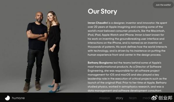 Imran夫妇在2016年底离开了苹果,成立“Humane”,“hu.ma.ne”的意思是“人类和计算之间的下一次转变”。