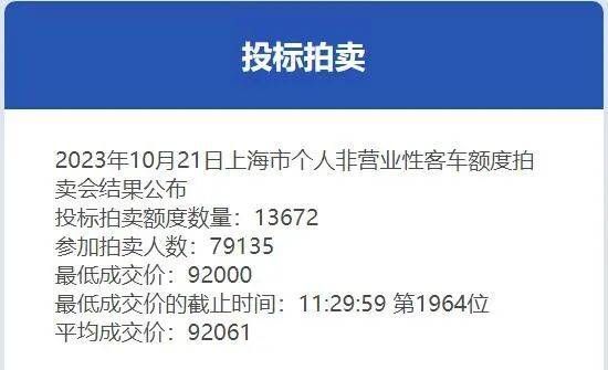 今年10月,上海车牌竞拍中标率只有17.3%,也就是5个人里不到1个人能拿到车牌,但车牌平均成交价却高达92061元。