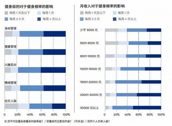 不难发现,健身频率和月收入大致成正比。(图/《2022中国健身行业报告》)
