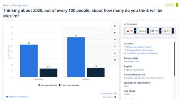 图:比利时和荷兰的民众感受(比利时人“感觉”100人里面有32个穆斯林;荷兰人“感觉”100人里面有26个穆斯林)