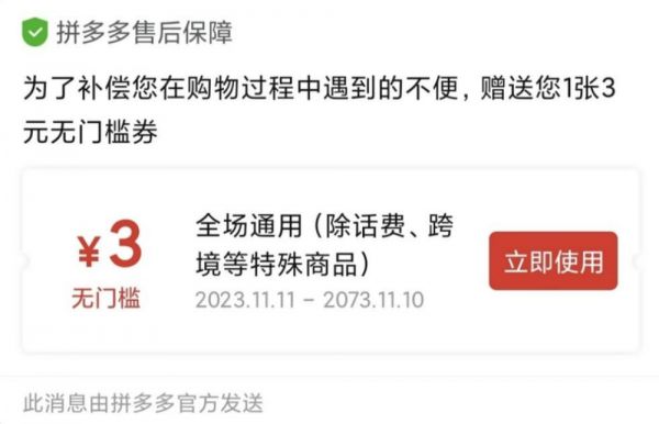 在评论区给差评后,电商平台赠送的无门槛劵(图源:张倩)