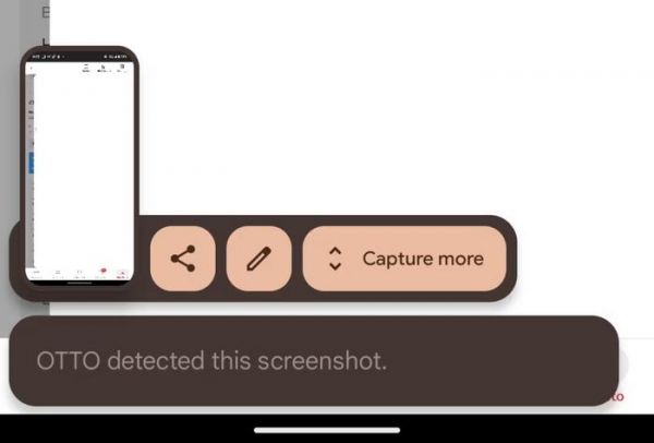 ▲ 图源 外媒 Adnroid Police据悉,当用户在 OTTO 应用程序中截屏时,应用左下角会显示一条截屏消息,通知应用已经检测到了用户的截屏行为,用户还可以通过内置的快捷功能分享、或对截图进行涂鸦等操作。