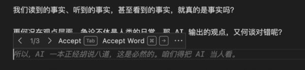 孙志岗:反正对于我来说,效果挺好的。我写作挺慢,很多时候都要字斟句酌,有时候,找到合适的词会花费很多时间。这时候,AI 就成为我一个非常好的帮手了。也许你不存在这个问题,你积累的词汇量比我多。