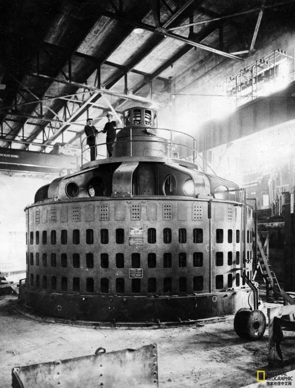 1924年,在尼亚加拉河上的水电厂里的涡轮机上,男人们摆好姿势拍下了这张照片。19世纪末,尼亚加拉大瀑布产生的电能使这片地区成为全球工业中心;到了20世纪70年代,该地700座工厂每天向尼亚加拉河排放946兆升废水。|ULLSTEIN BILD