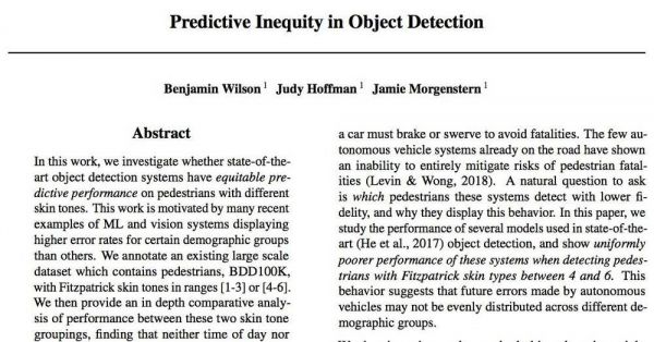 这份名为Predictive Inequity in Pedestrian Detection的论文,从一个简单的问题开始:像自动驾驶汽车所使用的最先进的物体检测模型,在多大程度上能准确地检测出来自不同人群的人?