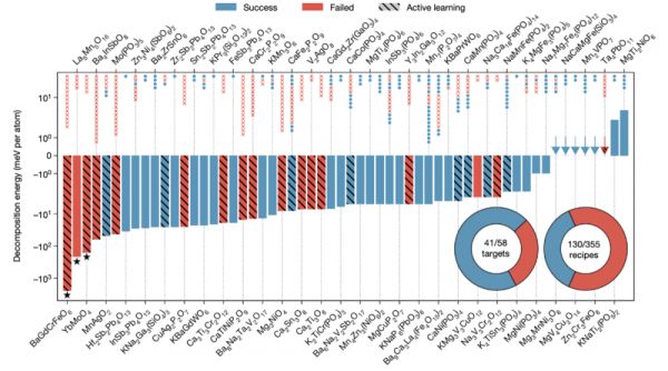 值得一提的是,在一次测试任务中,A-Lab 成功合成了 58 种预测材料中的 41 种,成功率达到了 71%。