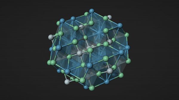 图|化合物 Ba₆Nb₇O₂₁ 是 GNoME 计算出的新材料之一,包含钡(蓝色)、铌(白色)和氧(绿色)。