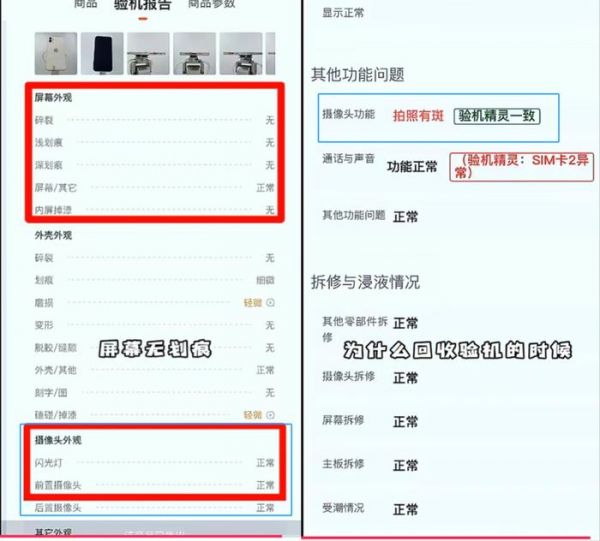 更令“猴大腕”感到不解的是,同一部手机,买的时候,转转出具的质检报告显示手机没有问题,但卖的时候,质检报告就出现了“摄像头拍照有斑”“屏幕轻微划痕”等诸多瑕疵,导致出手价格立刻缩水。