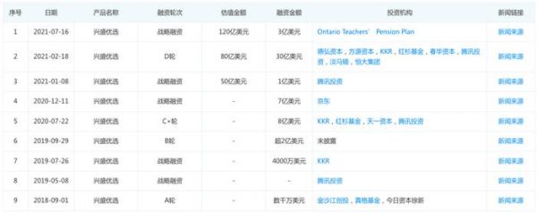 按照公开的媒体报道,2018年至今,兴盛优选累计融资额50亿+美金(不考虑未到账的),约350亿人民币。2021年年中,兴盛优选的市值曾高达120亿美金。