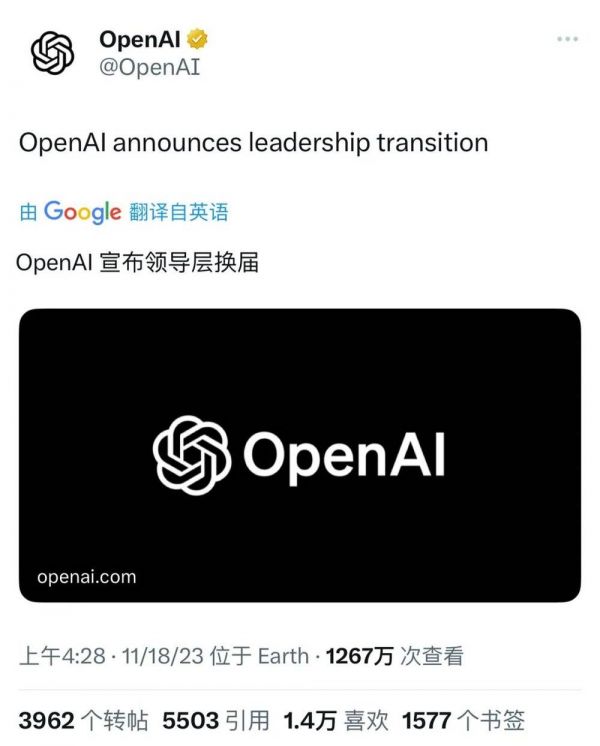 1. 11 月 18 日 04:28,OpenAI 宣布罢免 CEO Sam Altman