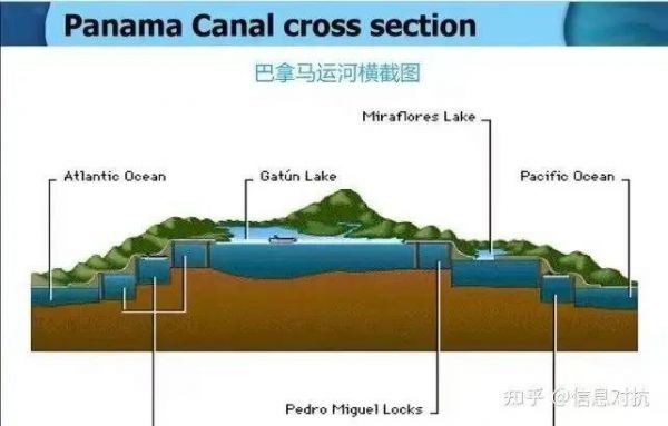 其原理和三峡船闸相同。只不过过巴拿马运河,无论是从太平洋进入大西洋还是相反,都要先上三级阶梯,再下三级阶梯。