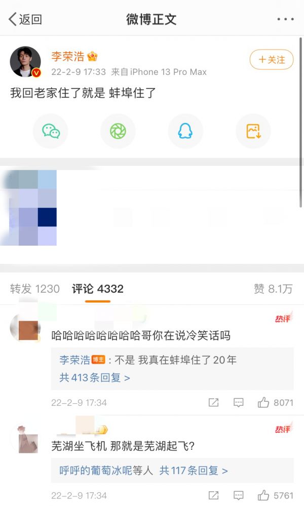 △ 李荣浩玩梗“蚌埠住了” 图源:微博