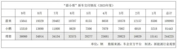 理想最近公布了9月创新高的交付量,2023年1月-9月的总交付量达到了244225辆,距离年初立下的30万辆销售目标又近了一大步。而反观蔚来和小鹏,今年的销售目标分别为24.5万辆和20万辆,在仅剩3个月的情况下,大概率无法完成。单纯看销量来看,理想占据优势,如下图: