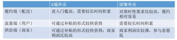 C端外卖与团餐外卖在履约、流量、供给端不同特点的对比