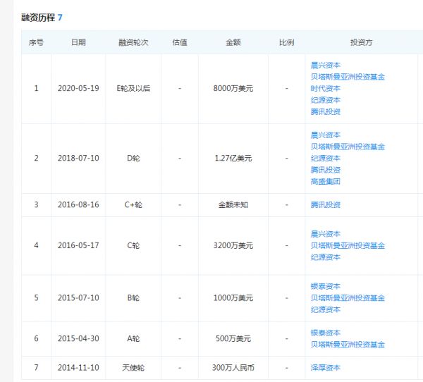 细数背后的投资方,包括晨兴资本、贝塔斯曼、腾讯投资、纪源资本等。但这几轮融资下来,几乎都是老股东持续下注跟投。其中银泰资本投资A、B两轮;贝塔斯曼连续下注5轮;晨兴资本投资3轮;纪源资本下注4次。