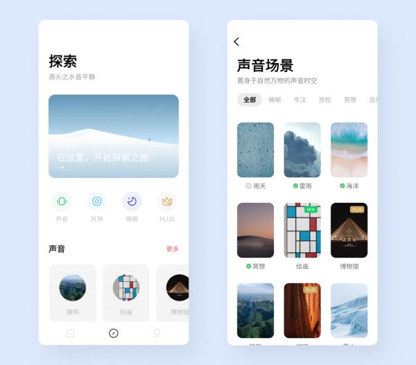 潮汐希望给在都市生活的年轻人打造一个在线化、陪伴式的身心放松空间,为他们提供身心健康解决方案,这个方案是基于他们日常生活中的碎片化场景,比如放松、睡眠、学习等。