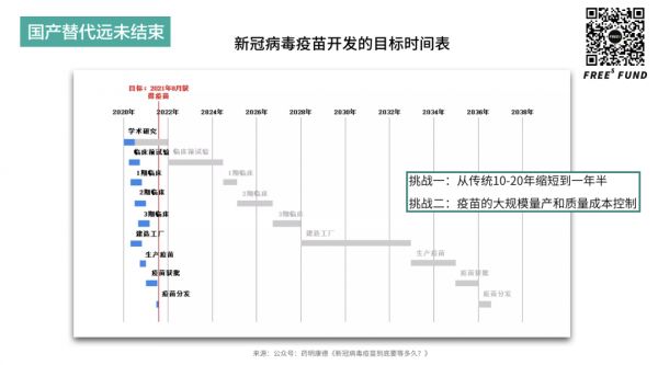 疫苗的有效性是一方面,能否大规模生产和质量成本控制是另一个挑战。欧美疫苗巨头除了自有生产能力外,还有像 Catalent、Emergent、Lonza 等 CMO 企业,具备量产能力。据强生公司透露,其在研的新冠腺病毒载体疫苗,预计产能达到 10 亿剂,市场价格控制在每剂 10 美金以下。不同于传统疫苗开发 10-20 年的周期,应对此次疫情各国都希望在 1 年到 1 年半的时间内确保疫苗上市,这对疫苗的研发、生产、分发都是相当巨大的挑战。