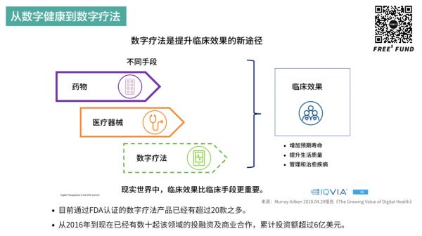 与其同时,数字疗法也在悄然兴起。得益于技术的迅速进步,数字疗法是一种基于软件程序的疗法,帮助患者预防、管理或治疗疾病。与传统药物和医疗器械相结合,数字医疗将会带来更高效、更普惠的治疗方式。