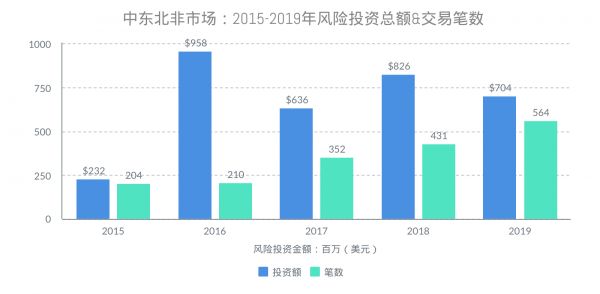 中东北非地区则在2019年实现了史上最大的一笔科技公司退出—— Uber 斥资31亿美元收购阿联酋打车公司 Careem 。根据中东北非数据公司 MAGNiTT 发布的 《2019年中东北非投资报告》(2019 MENA Venture Investment Summary),2019年该地区的风险投资交易笔数创下了近几年来最高的564笔,投资额为7.04亿美元。