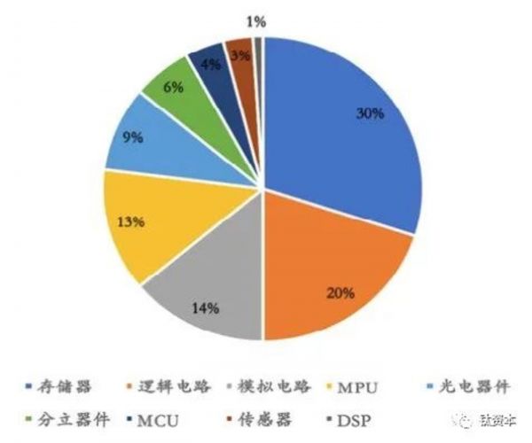 全球半导体细分领域市场占比