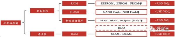 存储器分为几大类型:首先是光学存储器,例如CD、光盘,包括蓝光存储等等;第二类是磁性存储,例如PC的HDD硬盘;第三类半导体存储,又分两大类,一是非易失性的存储,一是易失性的存储。所谓易失性与非易失性指的是在加电与断电之间的数据能否得到保留。非易失性存储有几个类型,比如像ROM、FLASH 、RRAM、MRAM等类型;易失性存储,例如RAM。