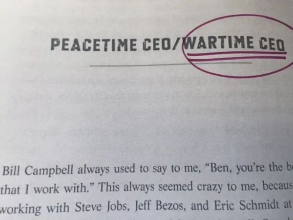 实际上,不存在一分为二的“战时“与”平时”,虽然这是公司创始人之间经常使用的类比。但是,没有语境地讲,这其实就是对于不同的经济环境,采取不同的发展方式,还可以理解为,创始人兼CEO只是个暂时的角色。